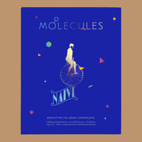 Molecules is the most innovative product Naive has ever created. Domantas Uzpalis had been researching the chemical composition of cacao which is a great natural source for endocannabinoids, opiates and stimulants. The therapeutic dose of these chemicals can alter brain chemistry and induce chocolate euphoria. In cooperation with scientists, he developed the process of preserving the abundant quantities of endorphins, antioxidants, trace minerals and vitamins naturally present in cocoa. This chocolate is dedicated to the people who want to hack their own biology.